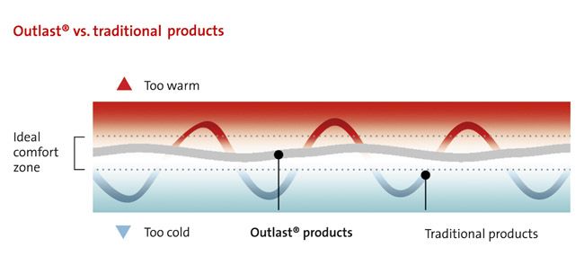 It should be mentioned that Outlast PCM is a technology and not a material used. Traditional sweat-wicking materials help you get rid of heat when you're overheated, i.e. active. But Outlast PCM reacts to body surface temperature. For example, if you are patrolling in a cold environment, it will adapt and help warm you up.