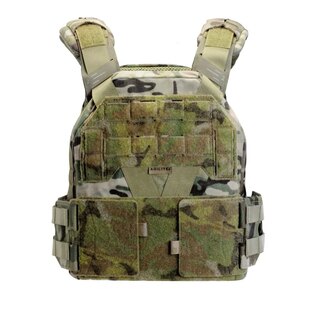 This plate carrier comes with a one-size fits all low profile cummerbund so it guarantees a perfect fit and you can even adjust it by yourself on the go while wearing it. It really is incredibly versatile. In the front it allows you to switch between either velcro flaps or quick release buckles. It offers both internal and external mounting options.