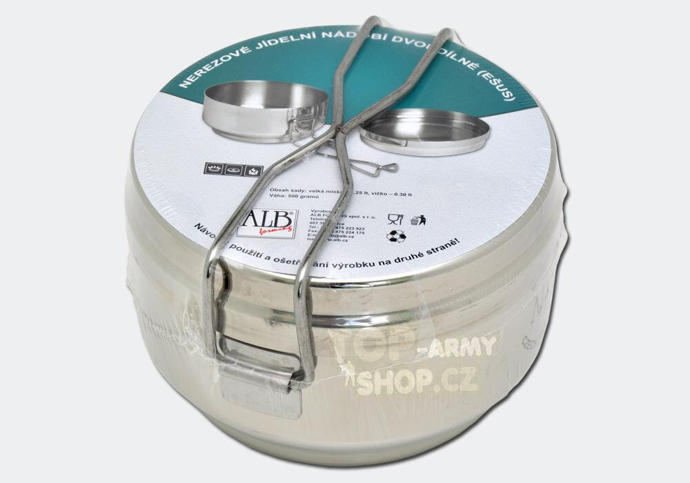 Mess kit has a polished outer surface, the inside is grounded.