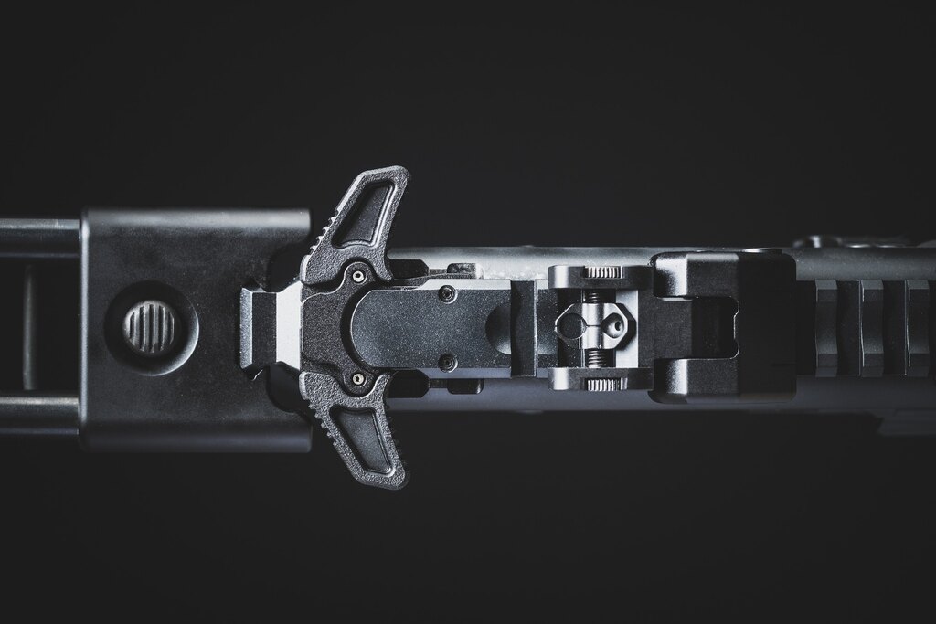 The fully ambidextrous design allows the charging handle to be operated equally from either side using palm-blade, thumb-and-index finger, or traditional techniques. Both latches disengage simultaneously, eliminating the need to shift grip or apply uneven force. This is especially beneficial for left-handed shooters or for right-handed shooters operating the weapon from the support side.