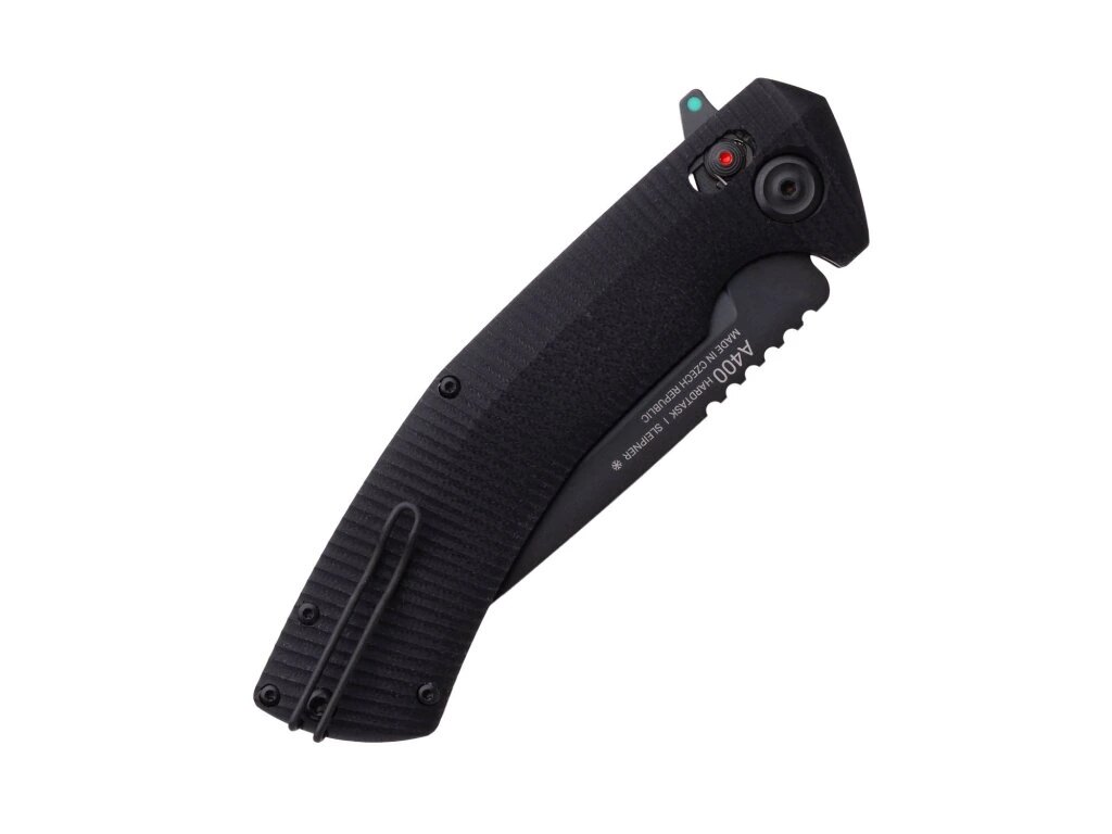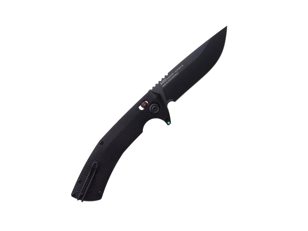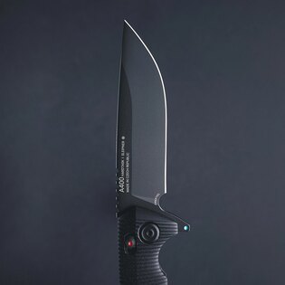 The drop point blade is sharpened to handle both delicate and forceful cuts. The DLC coating protects the edge from damage and gives the knife a discreet tactical look. Thanks to optimized geometry, the blade retains sharpness even with demanding use. The A400 feels light but cuts hard.