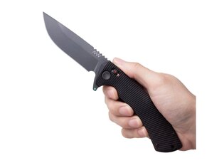 The handle with a matte finish fits naturally in the hand. The shape and texture are thoughtfully designed to hold the knife steadily even with gloves. Smooth lines do not cut into the palm, yet do not slip. The result is a knife that is comfortable to handle and feels solid – exactly how proper EDC should feel.