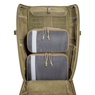 Inside the backpack, you'll find two Velcro pockets for quick gear division and flat zip pockets for small items or electronics. Small mesh pockets and other zip storage spaces ensure order even during quick access. The lid contains a pocket with a small organizer for instant access to essentials.