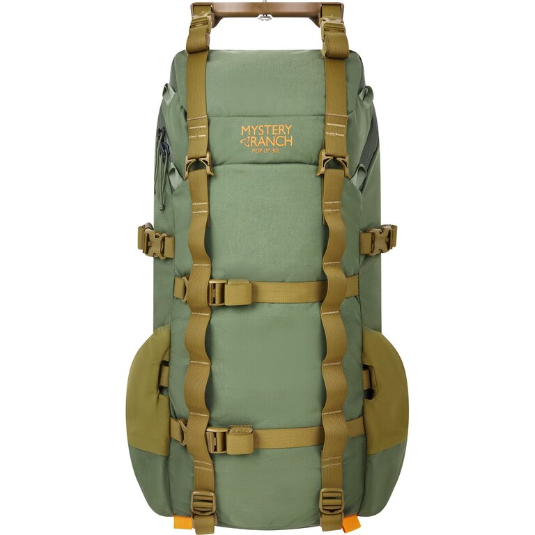 The Mystery Ranch Pop Up 30 Gen II backpack offers the versatility of a compact daypack with the ability to handle heavier loads when needed. The telescopic aluminum frame expands to increase load-carrying capacity, while the OVERLOAD™ system positions weight close to the body for improved stability and comfort.