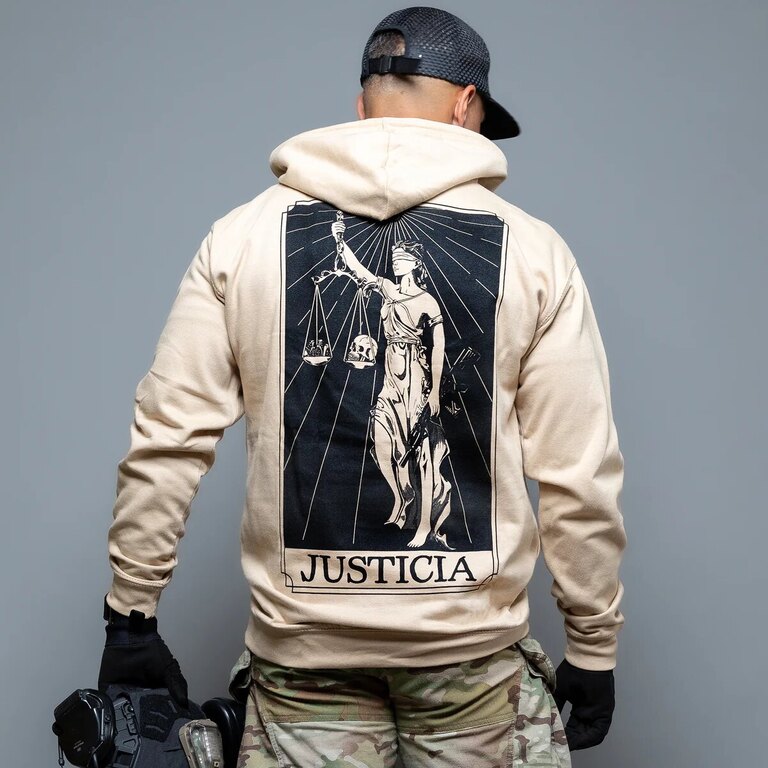 The Justicia hoodie from Brothers in Arms pays tribute to those who must protect justice in the harshest environments – on the battlefield, with a weapon in hand. Inspired by the goddess of justice, the hoodie is a symbol of the difficult balance between strength, judgment and responsibility. For everyone who makes the right decisions every day – even when it's tough.