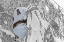 The Ghosthood® Reversible IRR Backpack Camouflage Cover is designed to reduce the visual and near-infrared signature of carried gear in the field. Its reversible construction combines a conCAMO-patterned snow variant on one side with a plain white surface on the other, allowing rapid adaptation to changing winter environments. The lightweight design is easy to pack and can be quickly deployed over a backpack without restricting movement.