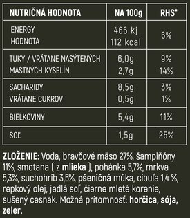 Inside, you'll find a hearty pork goulash with fluffy mashed potatoes and wild mushrooms. The spicy flavor of the meat complements the smoothness of the mashed potatoes and the aroma of the mushrooms – a combination that will get you back on your feet after a tough day. Every bite is full of energy, flavor and genuine craftsmanship.