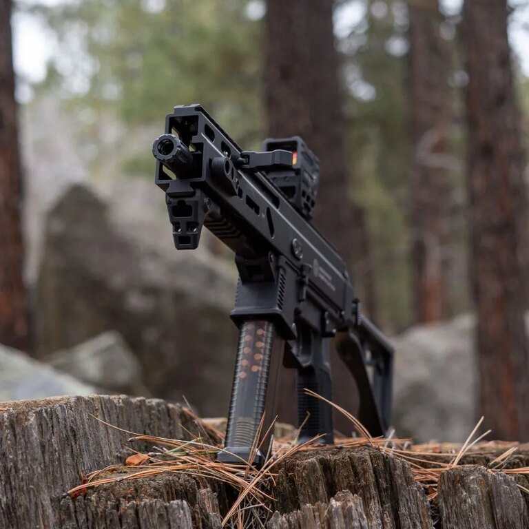 The HB Industries Charging Handle for Grand Power Stribog offers a folding solution that saves space while providing a quick and secure grip during charging. When charging, you extend the handle to its extended position, and upon release, it folds back automatically so it doesn't stick out from the weapon's body. It is ambidextrous, robust, and fits directly as a replacement for the factory fixed charging handle.