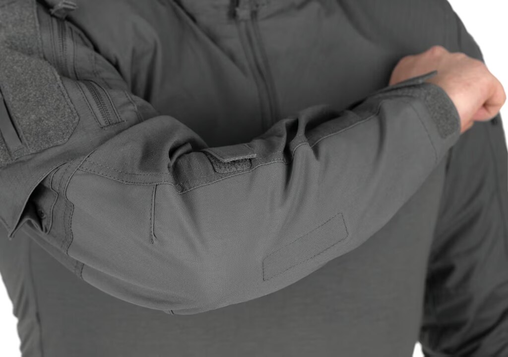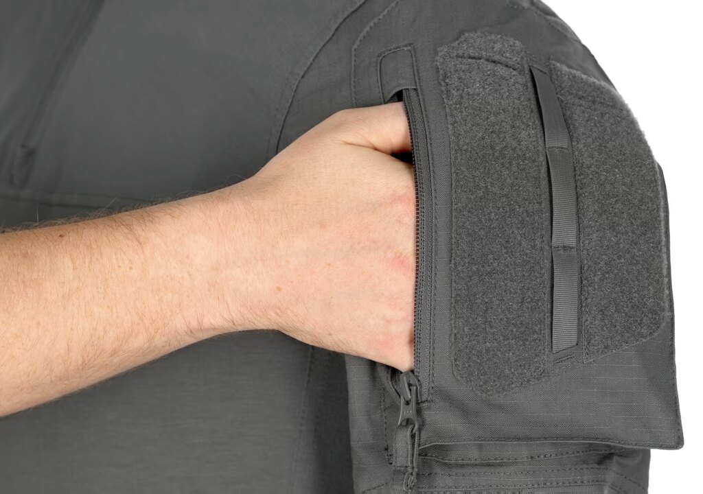 In the upper part of both arms there are pockets that open with quality Japanese YKK zippers. Inside these pockets there are loops for attaching equipment and you can store here, for example, individual elements of the first aid kit. On the outside at the top of the sleeve we can find Velcro panels for attaching IFF indicators, V-LITE or other unit markings and the like.