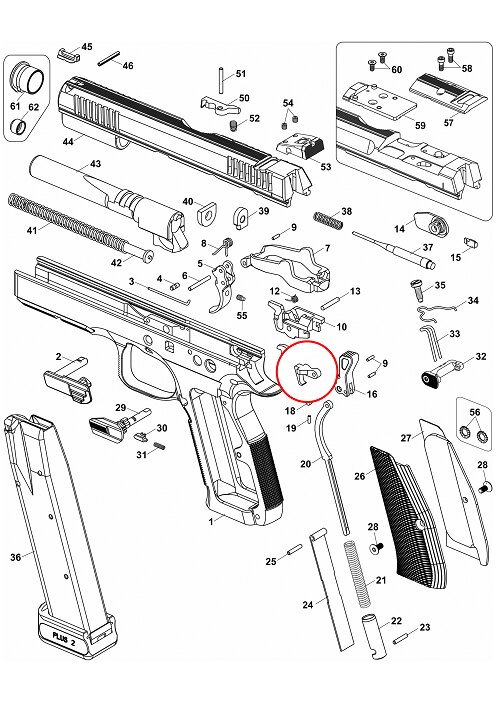 To ensure proper functionality of the disconnector, it must be installed by an experienced gunsmith. Correct installation guarantees that the weapon behaves as expected and contributes to the disconnector's and the pistol's longer lifespan.