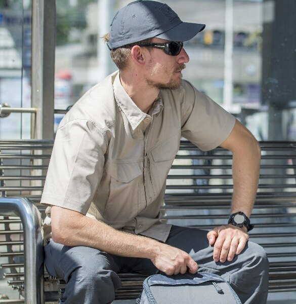The shirt is anatomically cut, but is loose enough to allow unrestricted movement and hide even low-profile body armor or an IWB pistol holster. The front reinforcement under the collar prevents it from rolling up, so we always stay well-groomed. The shirt is fastened with classic four-hole buttons, which ensure a firm hold of the buttons. The button baffle has a practical eyeglass loop at the pocket level. The shirt uses a fabric with a special Ripstop treatment, preventing tears. The fabric used is also breathable and dries quickly.