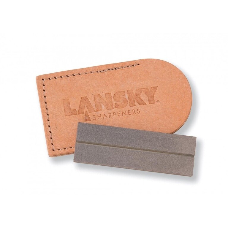 It is a compact pocket sharpening stone with diamond surface on both sides. In the middle of one side there is a special groove for sharpening pointed objects such as fish hooks. It comes with practical leather pouch.