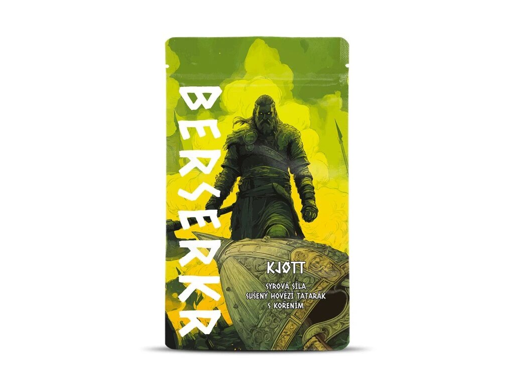 Berserker® KJØTT Steak Tartare Inspired is premium beef jerky based on the flavor profile of classic steak tartare. A rich, meaty character is complemented by a subtle spice blend derived from traditional recipes, preserving the essence of this well-known taste. The result is a bold jerky with a full-bodied beef base, offering a distinctive alternative to ordinary snacks. Thanks to the drying process, it is compact and suitable for travel, outdoor activities, or a quick snack during the day.
