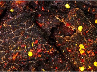 Freeze-dried mango adds a gentle sweetness and fresh note that contrasts with the spiciness of chili and ginger. Citrus components provide a light freshness, helping maintain overall balance without overpowering the natural flavor of the beef.