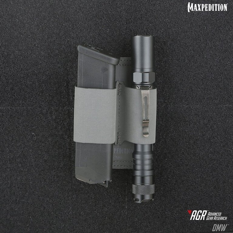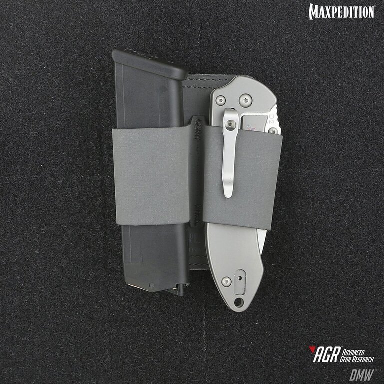 Dual Mag Wrap MAXPEDITION® AGR™ DMW™ - grey is a simple helper to fit 2 magazines. Designed to be placed into the CCW compartment of some Maxpediton bags or packs and fits 2 magazines from wide range of handguns. Place the magazine under the flap as close to the middle as possible, wrap the flap around the item and secure it using velcro on the back. Strong attachment is ensured by Velcro panel. The wrap holds also other items such as flashlight, tools, etc.