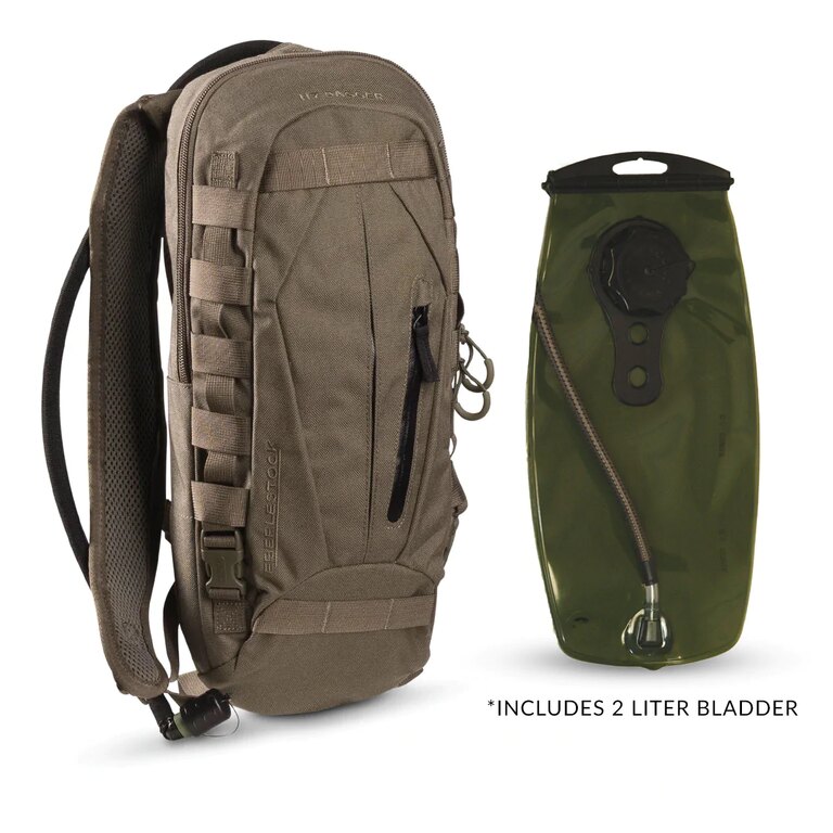 The Dagger by Eberlestock is a minimalistic and light weight pack with a hydration bladder. Due to its low-profile design it can be used on its own or attached with MOLLE webbing to a larger backpack. The Dagger is mainly designed for hunters and military.