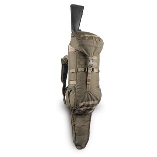 The Gunrunner pack is a pure hunters' pack with an integrated scabbard for your hunting rifle or shotgun. The pack is great for multiple-day hikes, it offers sufficient space and is literally covered with MOLLE compatible webbing, so you can expand it and organize it according to your requirements. In total, the pack features 5 different pockets and compartments for guns.