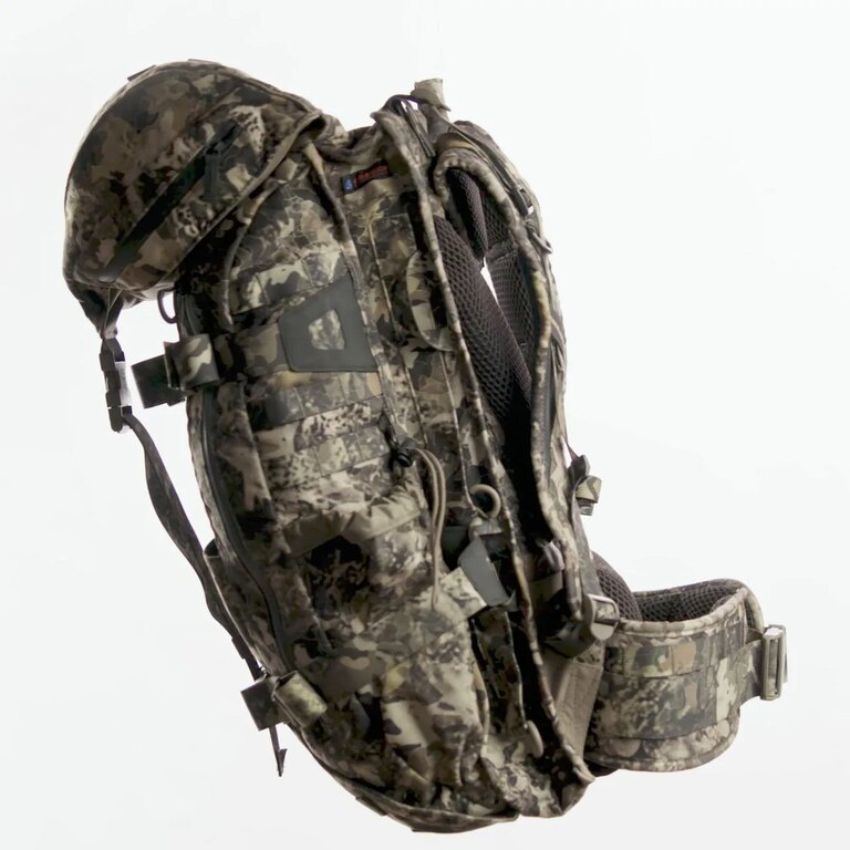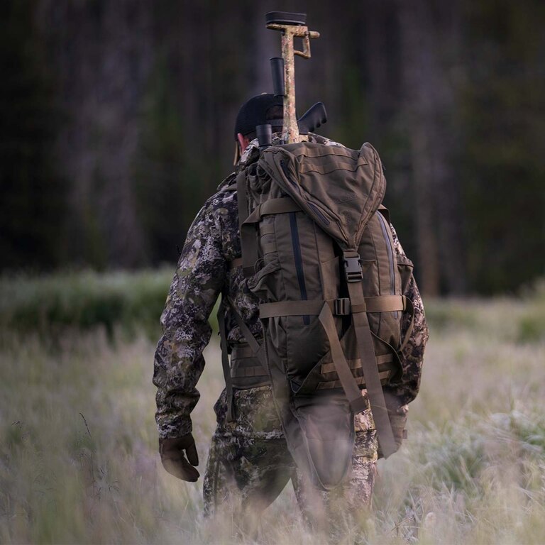 The patented integrated scabbard system for rifle-sized guns will allow you to transport hunting rifles without using your hands. The scabbard is located near the back panel for better distribution of weight.
