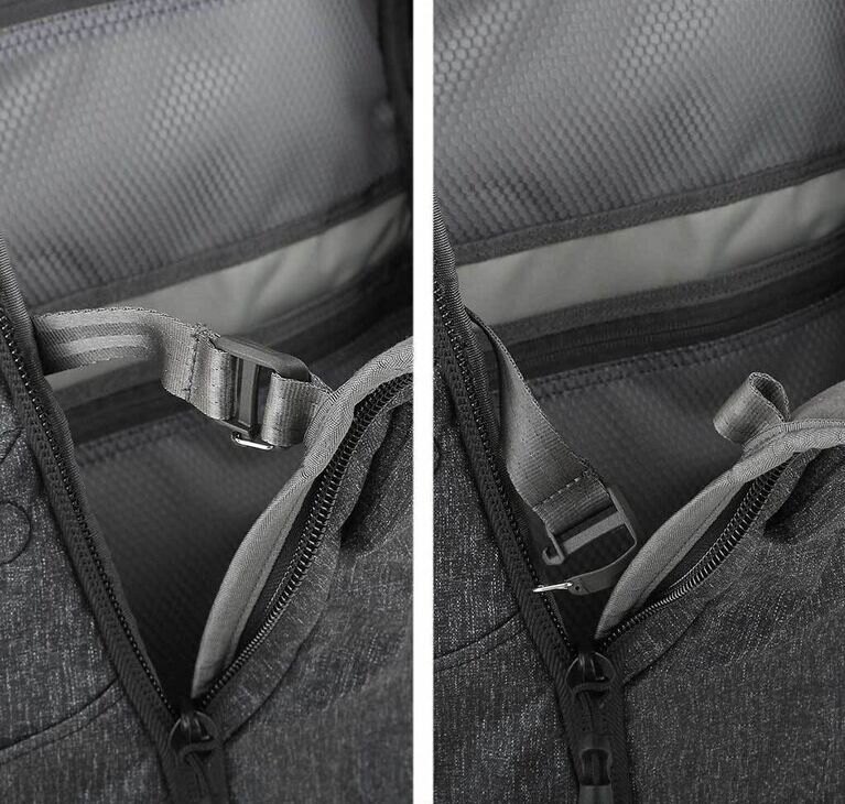 Another feature that makes using a backpack more pleasant are tuckable magnetic wings, thanks to which the main compartment can be closed very quickly even if you do not have enough time to zipp it. Magnetic wings Reliably ensures the compartment from opening and losing the content.