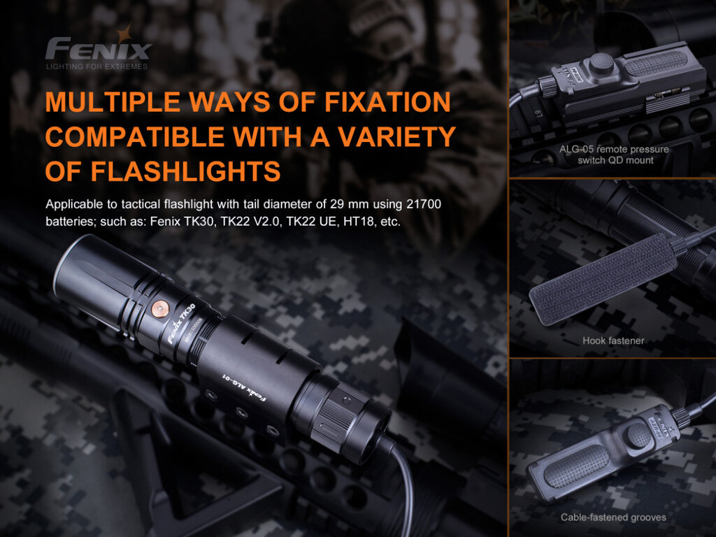 The AER-04 is designed for specific Fenix flashlight models and works with them without modifications. The connection is firm and stable, without play or switch failures. Proper compatibility ensures full functionality of both lighting modes. You attach it, tighten it and use it.