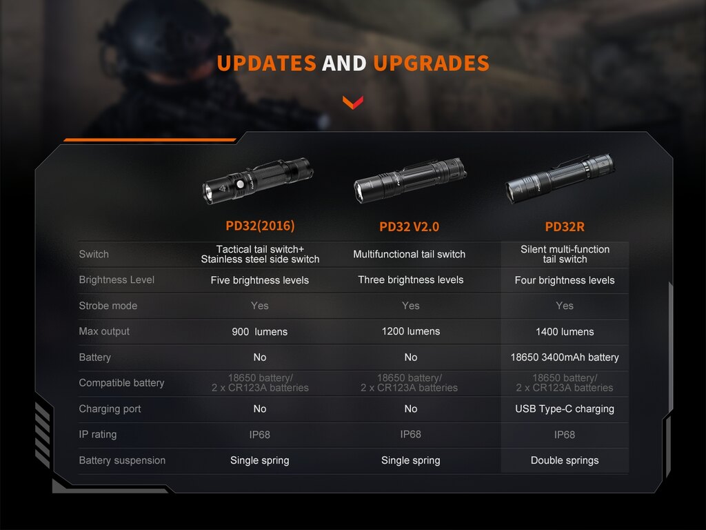 With the PD32R flashlight, you don't have to worry about changing batteries. The integrated USB-C port allows for fast and convenient recharging, saving you both time and money. Additionally, the status indicator always informs you of the current charge level, so you'll never be surprised by a dead battery.