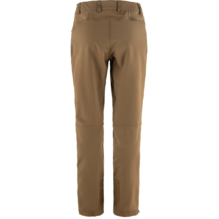 The pants are made from a double-woven stretch material that is flexible in all directions. This ensures they don't restrict movement during walking or more challenging terrain activities. The knees are anatomically shaped, so they fit naturally and don't twist during wear.