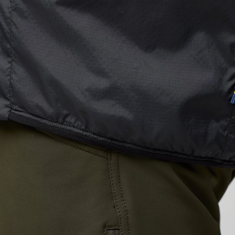 Two zippered pockets hold all essentials without interfering when wearing a backpack or hip belt. The entire construction is lightweight and easily packable, so the jacket doesn't take up unnecessary space in the backpack.