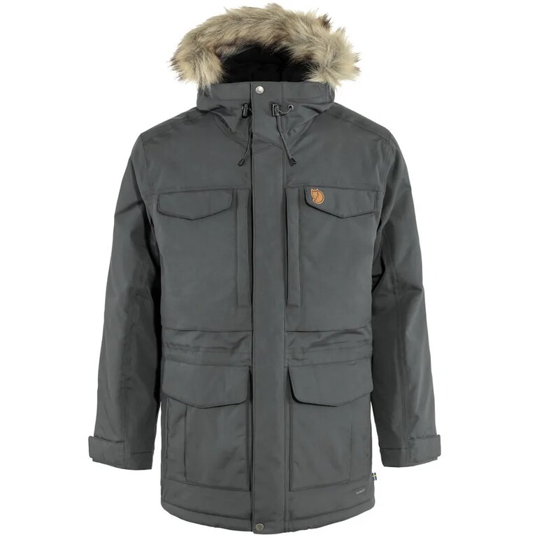 The Fjällräven Nuuk M winter parka is a functional jacket with a longer cut, ideal for cold days. It is suitable for outdoor activities as well as for everyday use in the city. The parka insulates even in wetter conditions and is overall resistant to moisture and wind, thanks to the Hydratic lining that provides extra protection.