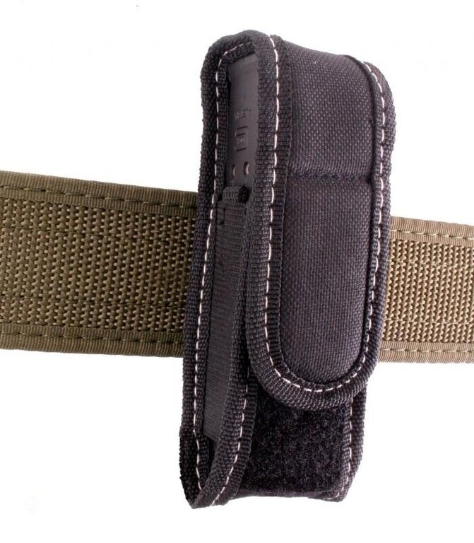 Designed for compact flashlights COP such as 18500N / 18503N2 / 18503N / 18505 aand similar – diameter 3 cm and height 16,5 cm. It will also hold a double-stack pistol magazine (for Glock 17 / 19, H&K P30, Sig Sauer P226 / P228 nebo Walther P99) or multi-tool of dimensions (h x w x d) 11,5 cm x 3,5 cm x 2 cm.