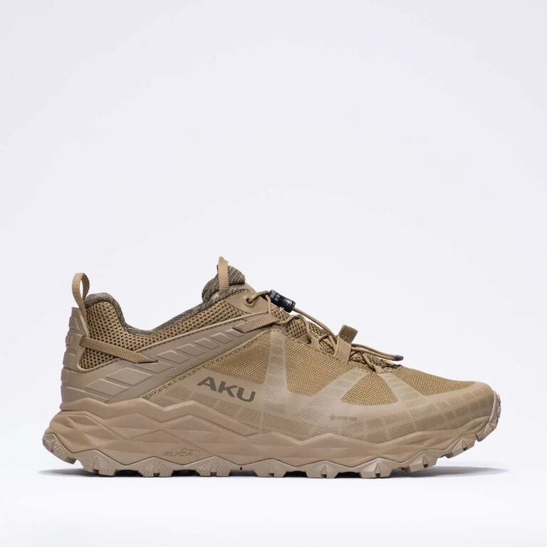 The AKU Tactical Flyrock T GTX® shoes are lightweight tactical footwear designed for everyday use, training, and service. They combine low weight, high comfort, and advanced technologies for stable movement in both urban and field environments.