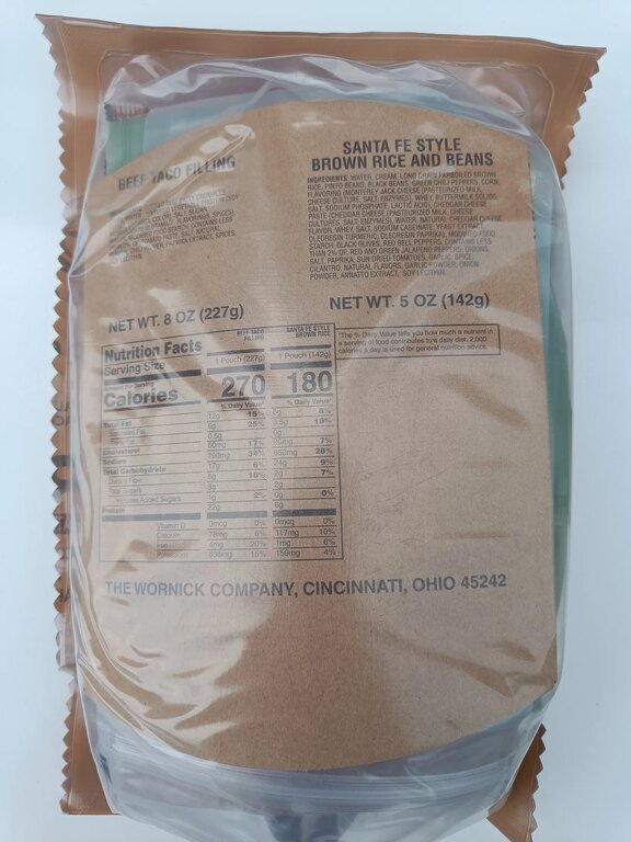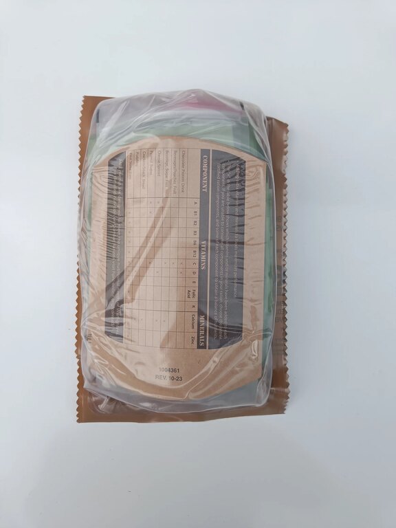 Each MRE contains multiple components that together create a complete meal. In addition to the main entrée, rations typically include side items, snacks, beverage powder, and an accessory pack. Individual components are packaged separately, allowing the meal to be consumed at once or gradually throughout the day.
