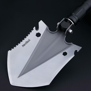 The Frigate NexTorch folding shovel is a multifunctional and durable 14-in-1 folding shovel.Beyond the classic showel, it holds a variety of other tools that will certainly come in handy when you're out.The blade is made of durable and stainless steel .The handle, due to weight reduction, is made of light but high strength airborne aluminium.The handle surface is then improved by an anti-slip texture for a stable and firm grip in any situation.