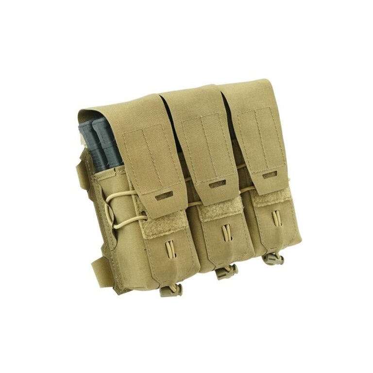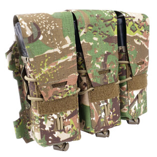 The panel has a low profile, is light and made of robust laminate. Entrances are secured with Velcro flaps, so access to ammunition is easy and fast. The magazines are secured inside with a flexible bungee cord with a stopper, which can regulate the clamping force of the magazines. In addition to magazines for AR15 assault rifles, this panel can also be used for models M4, PMAG G36, Steyer AUG, Sig 55X, AK47 / 74, etc. All materials used in this panel are treated with IRR treatment to reduce reflection in the infrared spectrum.