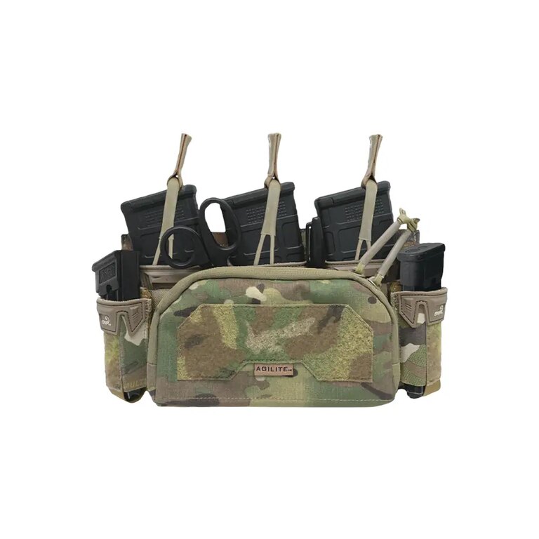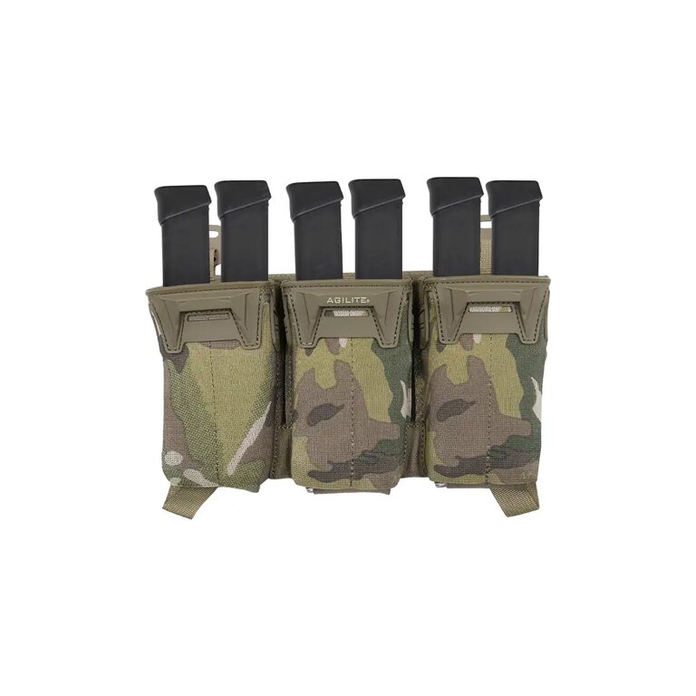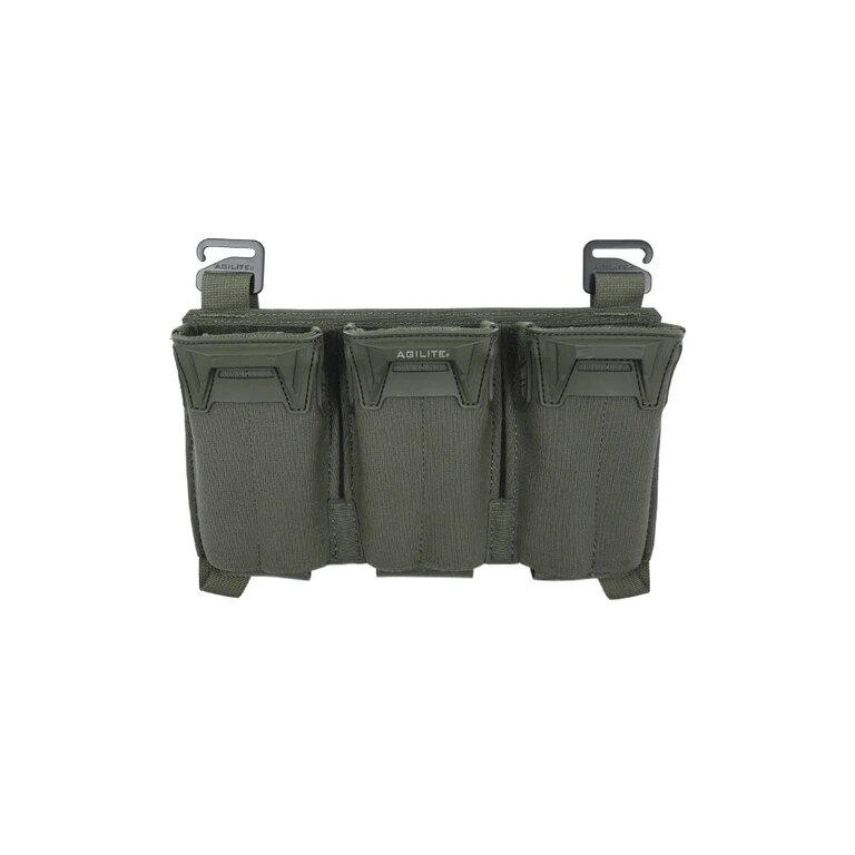 The Agilite® Pincer Placard™ Multi-Caliber front panel is designed to combine secure magazine retention with smooth one-handed manipulation. The integrated funnel-shaped polymer inserts guide magazines into position while maintaining a low-profile configuration.