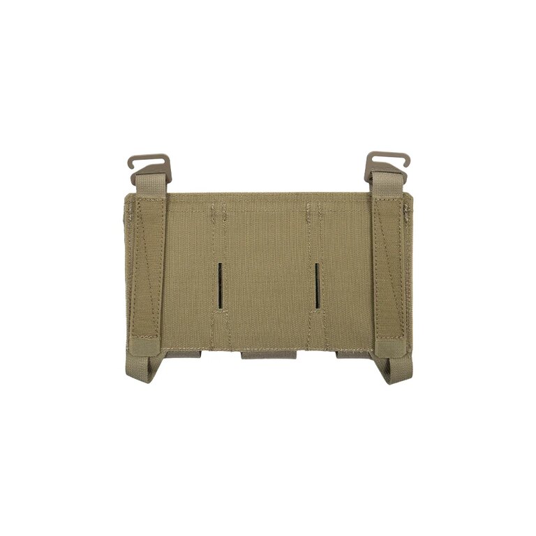 The panel is compatible with plate carriers configured for placard attachment. It includes G-hooks and MOLLE-compatible hardware for straightforward installation without permanent modification.