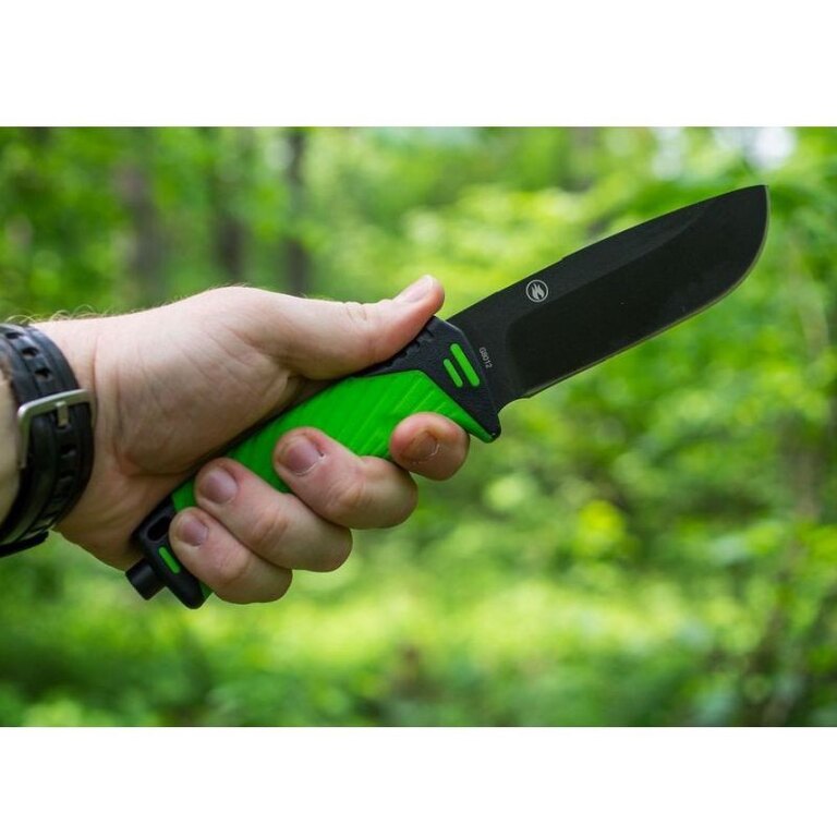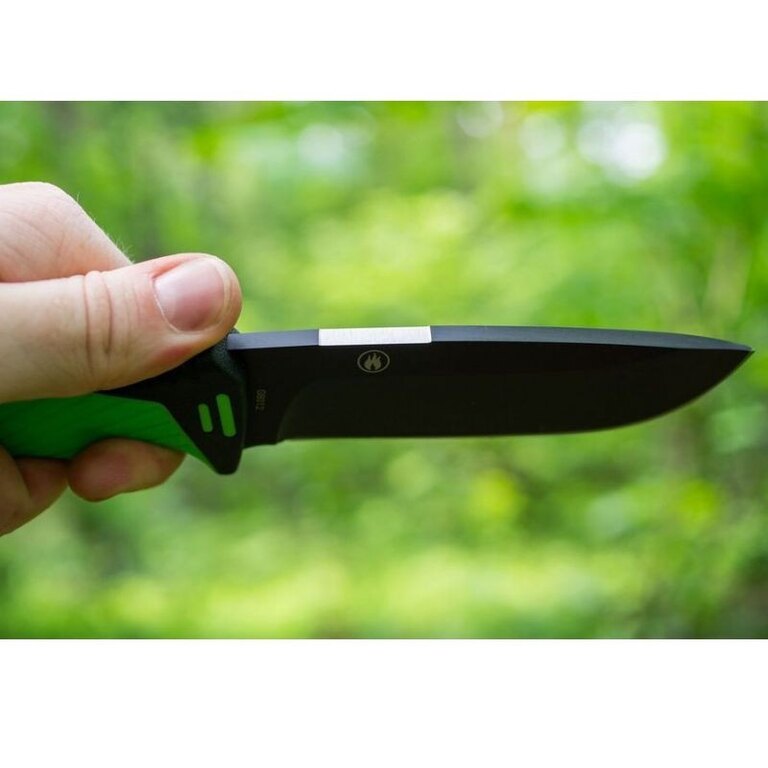Quality stainless steel 7Cr17 steel in combination with a 5 mm thick blade with a full edge clearly define what the new Ganzo knife was created for. Chopping and splitting wood is no problem for it, and it can handle meat slicing or emergency operations just as well. The blade with a length of over 11 cm provides sufficient comfort during use. An interesting feature is that the blade is fully removable from the handle - just unscrew the rear nut. It is also worth mentioning the special profile on the upper edge of the blade, prepared for the use of flint.