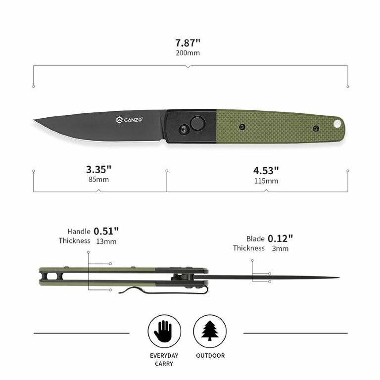 The Ganzo G721B relies on automatic opening. Just one press and the blade is out – fast, smooth, without hesitation. This is not a keychain toy, but a sharp tool that acts without asking questions. Ideal when there's no time for delays.