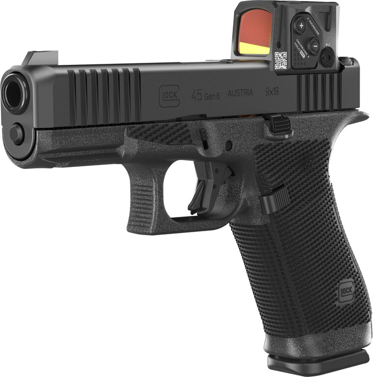 The Glock platform has long been the standard in service use. Its adoption by units like the FBI and special U.S. military branches underscores its reliability and ease of operation. Paired with the Aimpoint collimator, the Glock 45 offers rapid target engagement and increases its versatility, all without the need for further adjustments.
