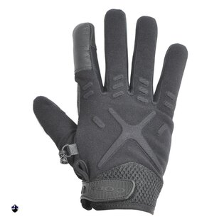 On the palm and under the thumb, there are Kevlar inserts that are resistant to cutting. Critical areas thus receive higher protection without unnecessarily reinforcing the entire glove. There is anti-slip padding between the thumb and index finger for a sure grip and higher resistance to frequent stress.