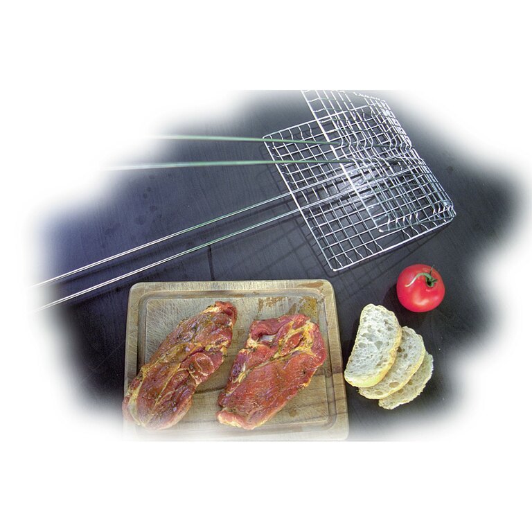 The extended 75 cm handle provides a safe distance from heat, allowing comfortable handling over open flames. The straightforward design ensures quick setup and immediate use without unnecessary preparation.