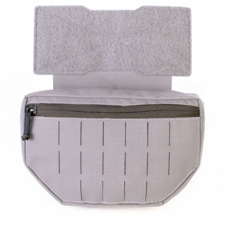The attachment system makes this pouch easy to attach with a Velcro under the front platform to a plate carrier, or a ballistic vest.This will give you additional space without taking another space on the platform, or elsewhere on the vest.The fastening is handled with a YKK zipper, which can also be operated with gloves, thanks to an extended strap. Inside the pocket you will find two elastic straps to fix the equipment and a fishnet Velcro compartment.The front is equipped with a laser cut MOLLE slits for attaching other equipment, such as turniquet holders etc.