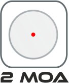The reticle uses a 2 MOA red dot, for which you can choose from 12 brightness intensities, two of which are intended for night vision. Regulation takes place automatically or manually (see above). The last setting before switching off is retained thanks to the integrated memory.