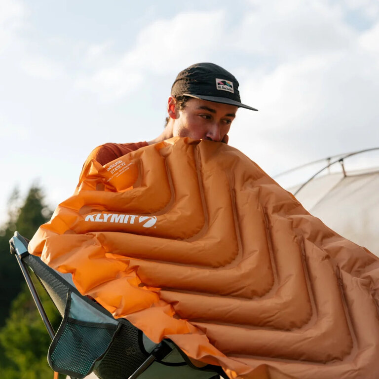 The Klymit Insulated Static V2 PAD inflatable sleeping mat elevates comfort on expeditions to the next level. It combines lightweight design, compactness and reliable winter insulation that retains warmth even on freezing nights. The V-shaped chamber profile and side rails keep the body in a stable position, allowing for comfortable sleep whether on your back, side or stomach. This is a dependable foundation for any season.
