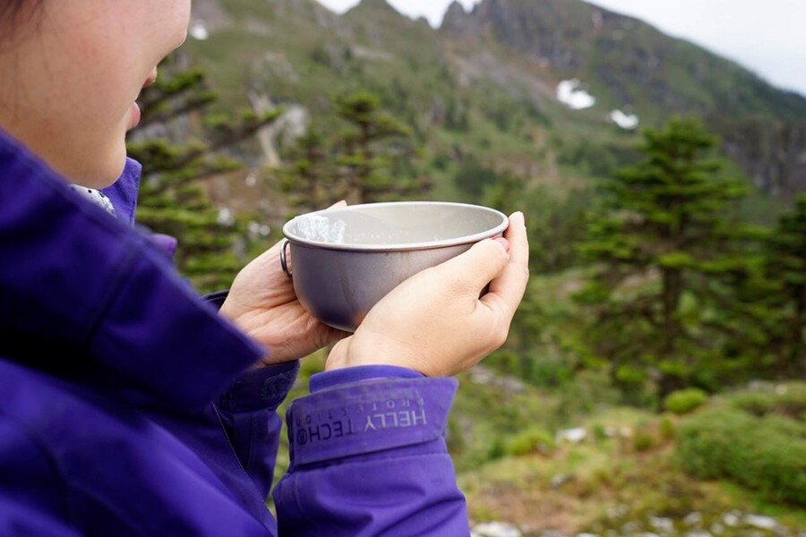 Practical and storage, light yet very strong titanium bowl. A folding handle makes handling easier and saves space in your luggage.