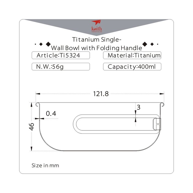 Keith titanium bowl with folding handle® / 400 ml will never let you down.