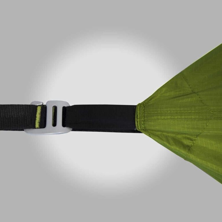 Klymit Sky Shelter is a customizable hammock shelter with a reinforcing pole construction.