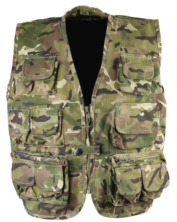 This versatile vest can be used for outdoor activities, airsoft, scouting, fishing and other activities. It is fastened with a zipper and a snap button in the front. The tactical vest is made in British camouflage patterns.