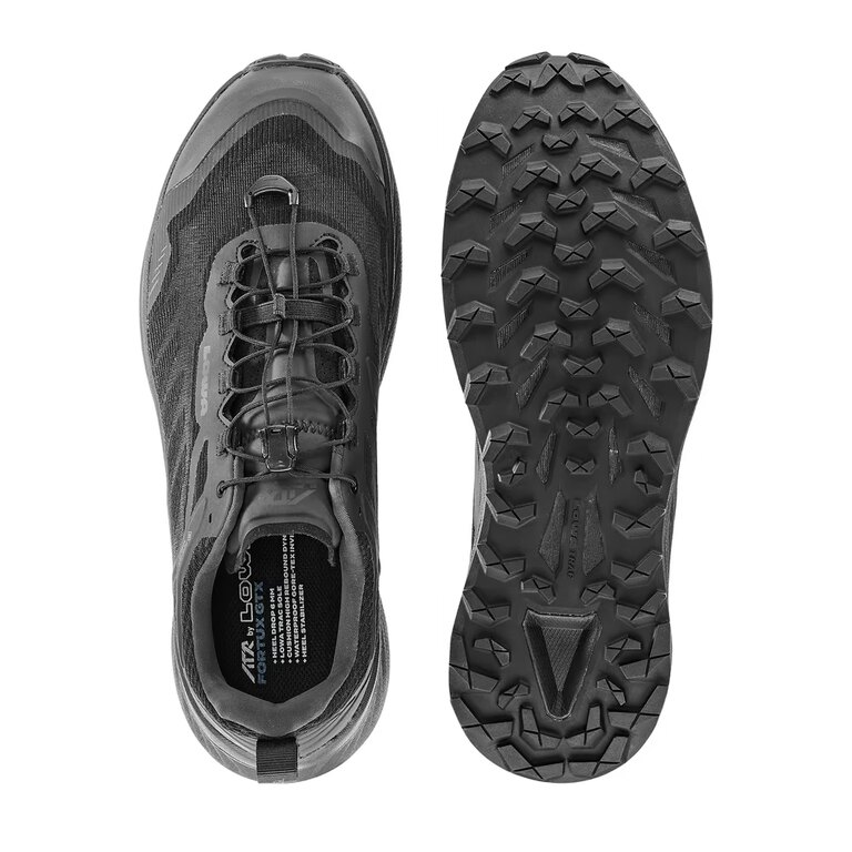 | Material in detail | Outer material: jacquard woven microfiber Membrane: Gore-Tex® Invisible Fit Insole: ATR (= All Terrain Running) - a special type designed for running and hiking in diverse terrain Midsole: Lowa® DynaEVA® - patented dual-layer EVA foam Sole: rubber - Lowa® Trac C |