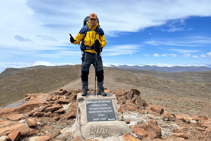 A man in the Rigad cap standing on a rock in the Drakenberg in Africa. Photo: Author's archive
