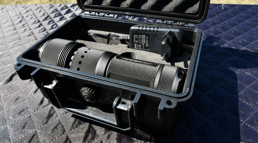 The packaging is also luxurious. You will receive the flashlight in a resistant carrying case along with a nylon belt pouch, charger and spare seal.